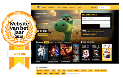 Pathé is benoemd tot populairste website van het jaar 2015 in de categorie vrije tijd.